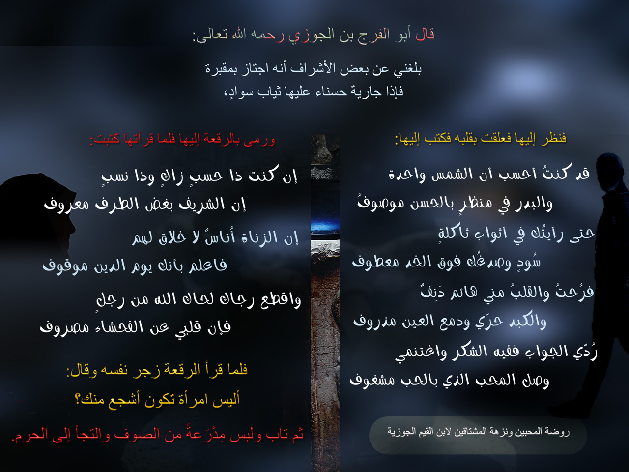 (1) انظر روضة المحبين ونزهة المشتاقين لابن القيم الجوزية ص 477.