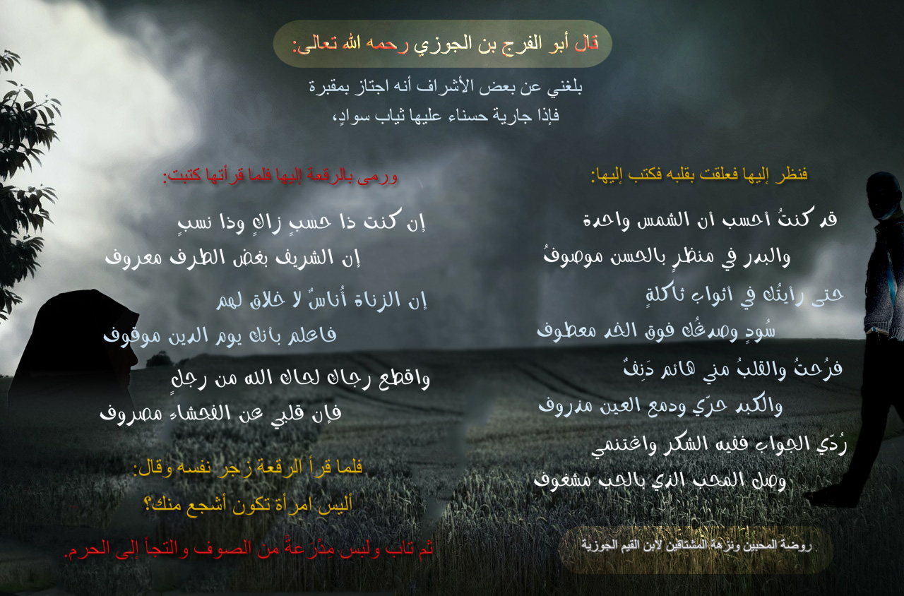 إن الزناة أُناسٌ لا خلاق لهم *** فاعلم بأنك يوم الدين موقوف
